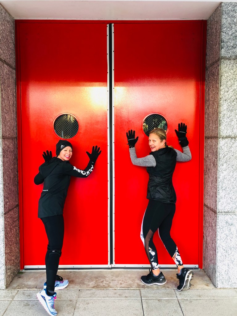 One of my favorite routes was called the taxi run, we meet at a local coffee shop and then we ran to the George R Brown, this was the actual starting point for the marathon. Once we made it to the GRB, I was informed it was good luck to run up to the red doors and kiss them. So that’s exactly what we did.