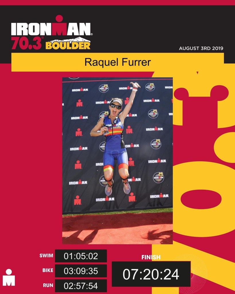 Now for the run, 13.1 miles, started to run and felt fine. About a mile into the run I started to cramp up, it was so bad I fell to the ground and started to massage my thighs. Thankful a really nice man ran past me and gave me his salt tabs. So salt tabs help with cramps and normally you take them to prevent cramps, but I had forgotten mine. I honestly did not think it was going to get as hot as it did. That day, Boulder had record heat!